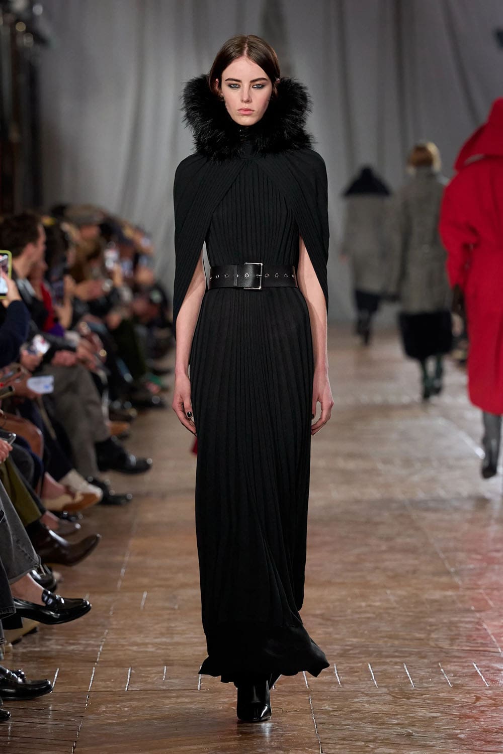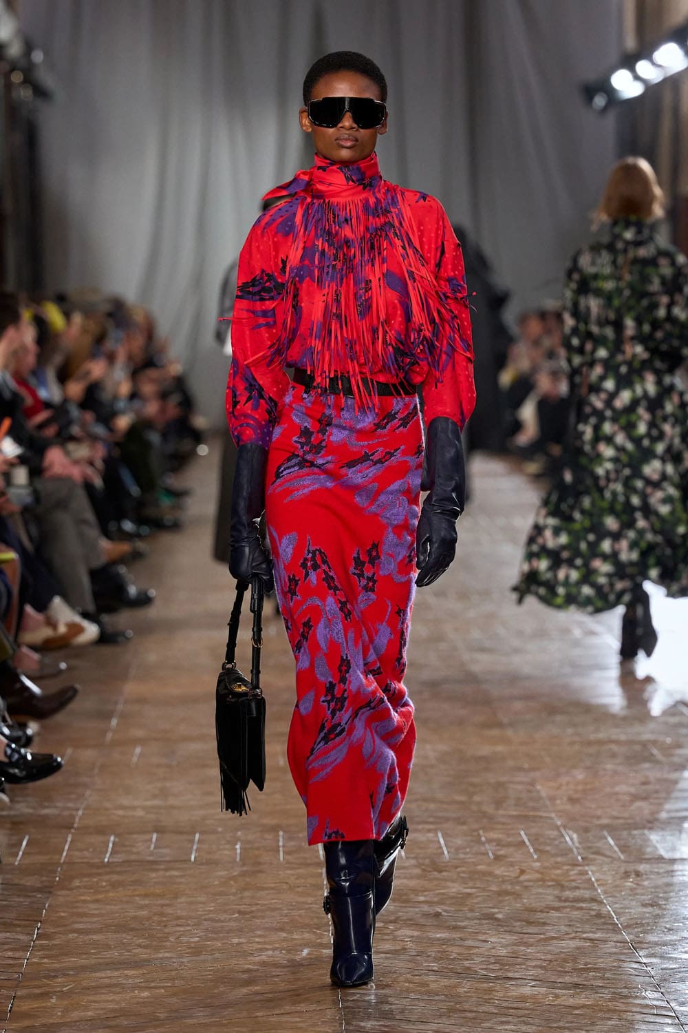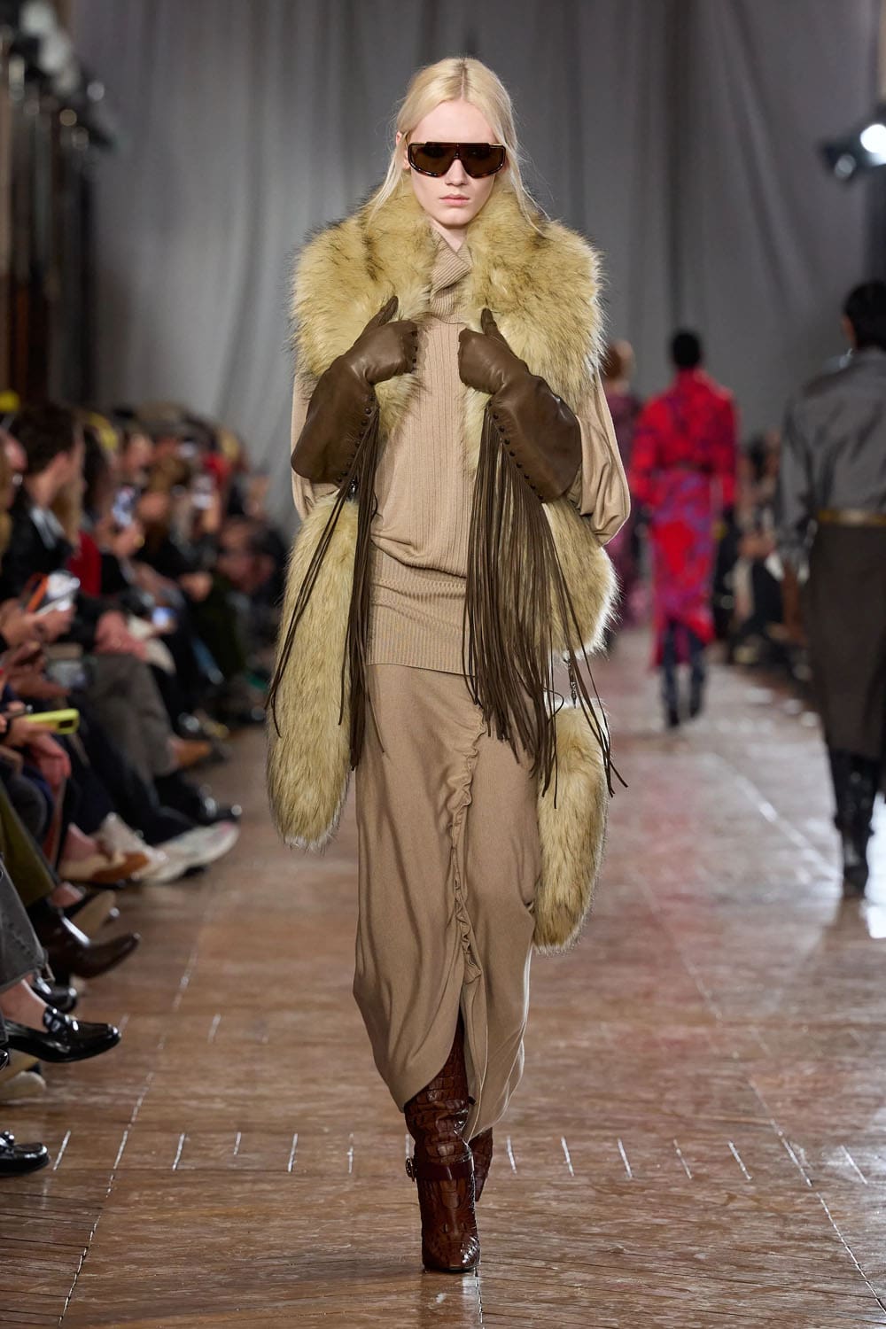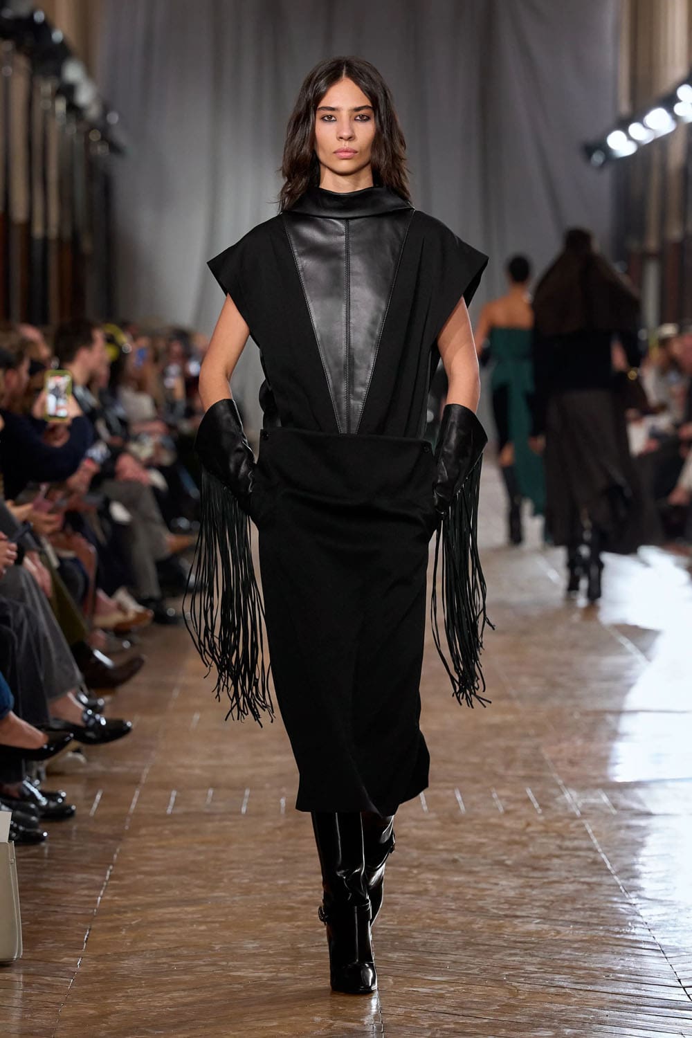 Les accessoires reprenaient les codes des années 1920 sans tomber dans le pastiche. Les gants, d'une austérité presque séduisante, s'étendaient au-delà du poignet. Les sacs arboraient des formes angulaires et géométriques, évoquant les intérieurs Art déco. Les chaussures alternaient entre escarpins sculptés et bottines fines qui allongeaient la jambe sans dénaturer les proportions des vêtements.