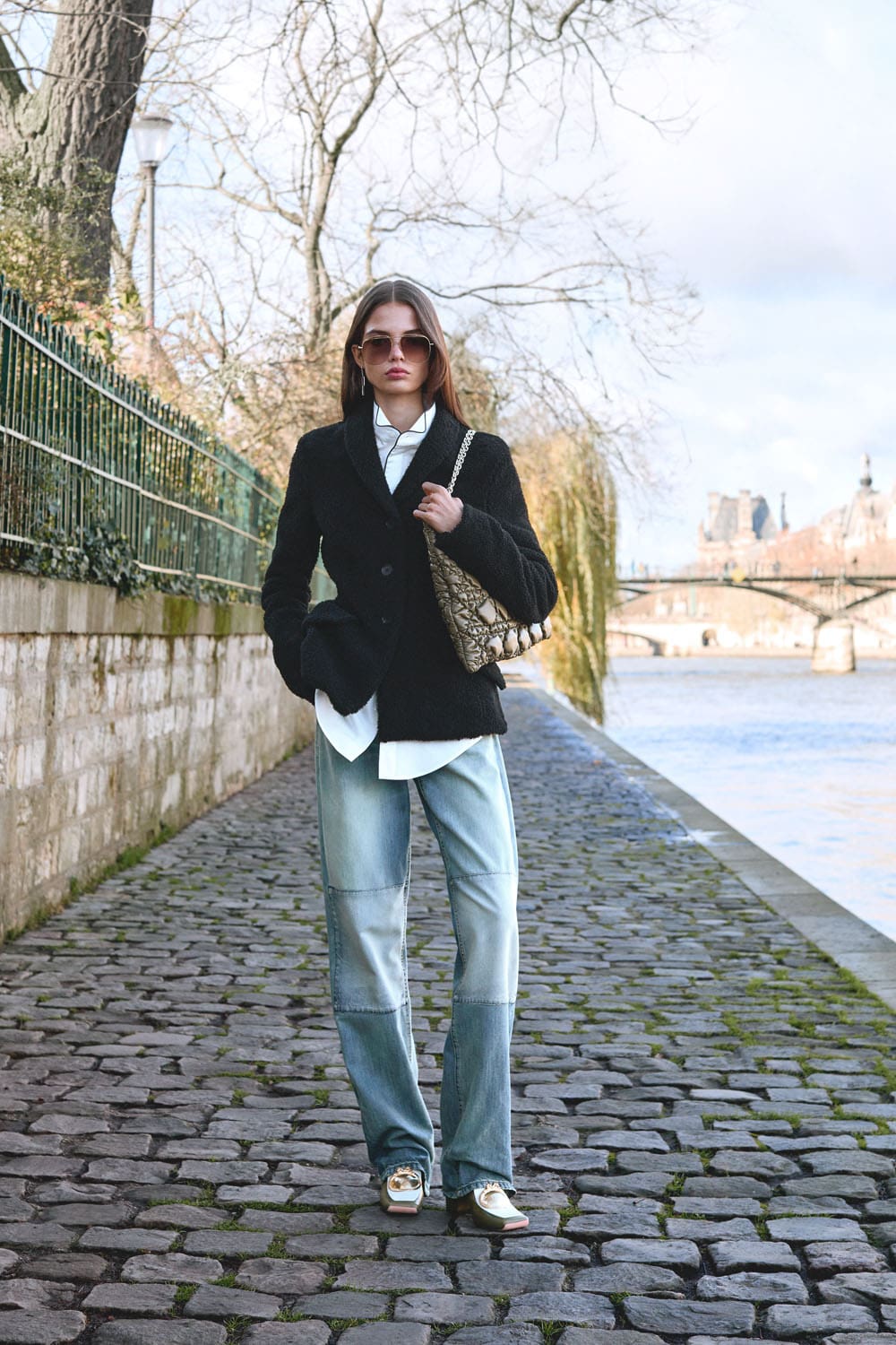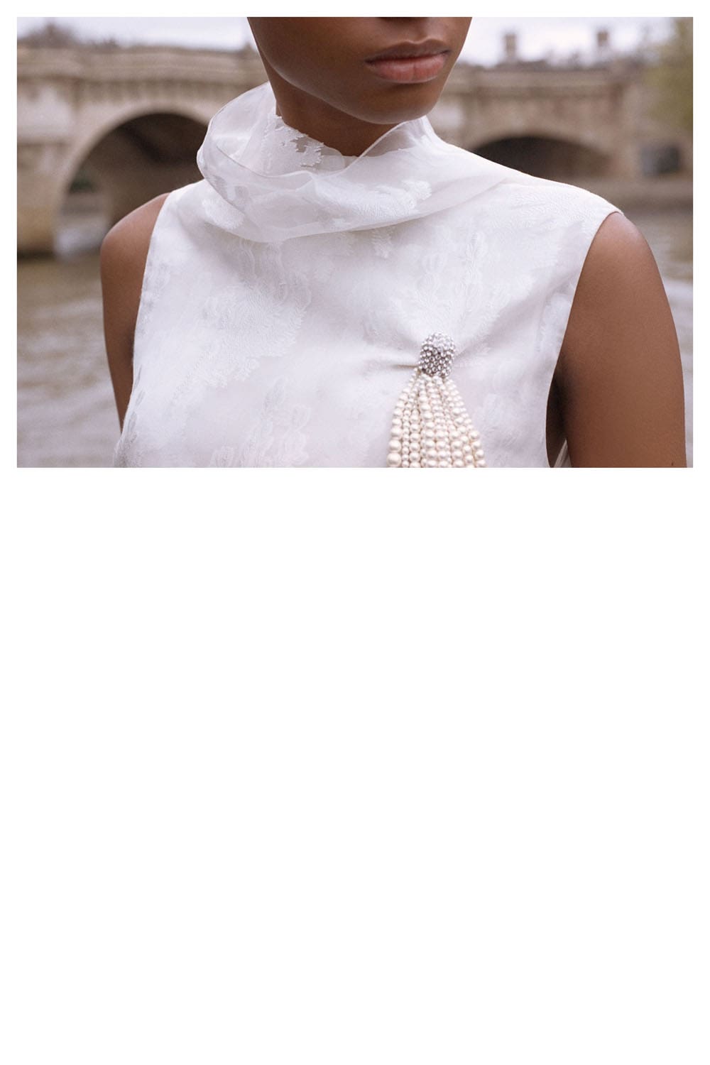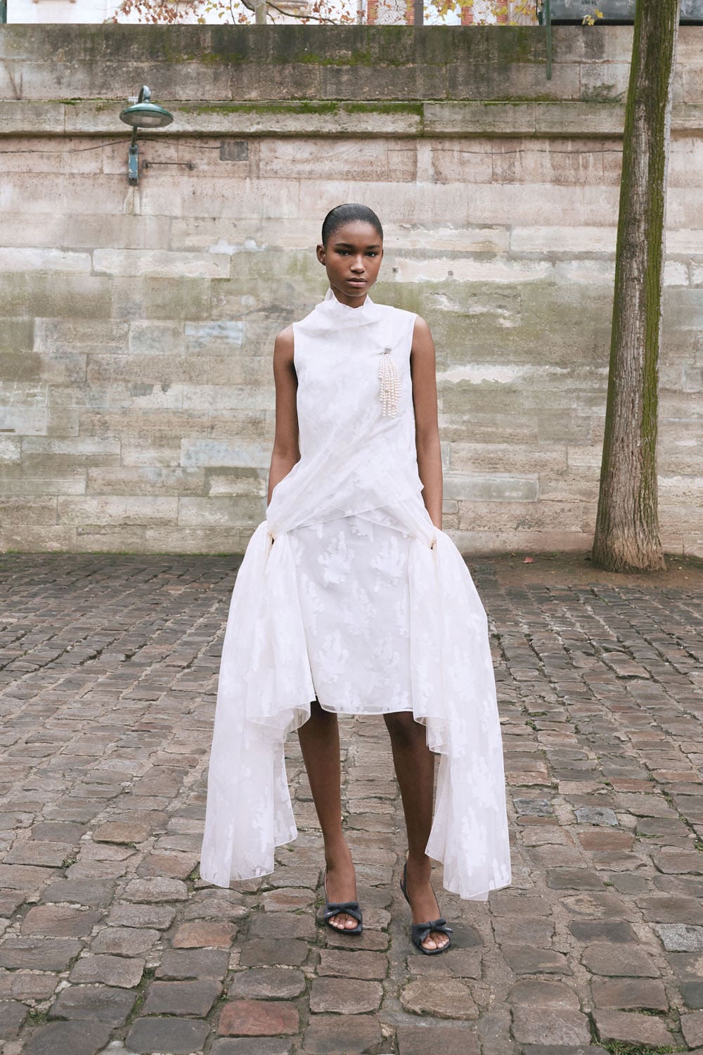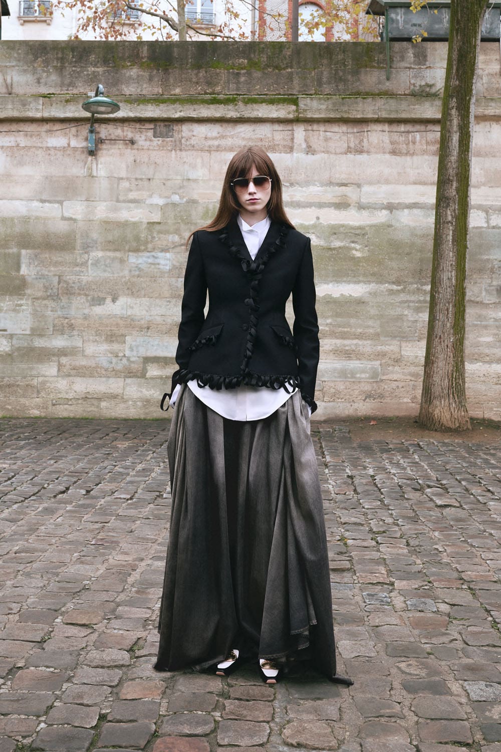 La collection s'articule autour de la notion de transformation – non pas de soi en quelqu'un d'autre, mais de la garde-robe en un ensemble de possibilités. Les pantalons larges en denim de soie et les robes sculpturales ne sont pas des opposés ; ils représentent les points d'un spectre d'attitudes, permettant à celle qui les porte de passer à volonté d'une posture contemplative à une allure théâtrale. Les accessoires, eux aussi, sont utilisés avec intention : le sac Lady Dior côtoie les nouveaux sacs Dior Cigale et Crunchy, suggérant non pas une hiérarchie, mais une pluralité – la liberté de définir son histoire à travers ses vêtements.
